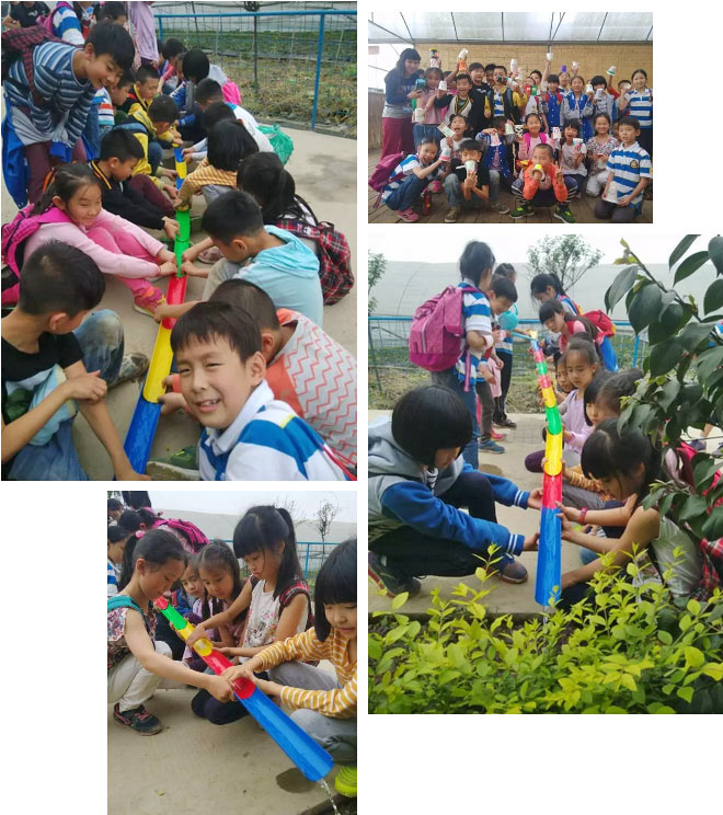 咦?老師手里拿那么多長塑料片是要做啥?哦,原來這個是要演示水到渠成的裝置啊!葫蘆哥哥講道:“植物要生長,需要適當?shù)乃?。我們通過合作來制作一個臨時裝置,灌溉植物。你們別看著它簡單,幾個人要配合得天衣無縫才算成功。”開始行動了!老師首先把我們分成幾個小隊,然后,讓我們各自拿一塊略長于瓦片的塑料片,手挨手地接起來,盡量接平,對準植物的上方,就像一道水渠。然后,他就開始往“水渠”上倒水灌溉了。我有點緊張,生怕出漏子。眼看水都倒下來了,我還沒有反應過來。只聽“啊——”地一聲,我嚇一大跳,原來有個同學沒有放平,水滴進土里了。后來,我們慢慢調(diào)整,一心一意,互不埋怨,竟然一滴水都沒有漏掉,全部喂到了植物的“嘴”里,我們成功了!欣喜之余,我想:男生平時都調(diào)皮好動,他們那邊可能不太妙吧。于是快步如飛地走過去看看熱鬧。果不出所料,他們的腳下一大片一大片的水,全濕了!哈哈,看來合作很重要啊!