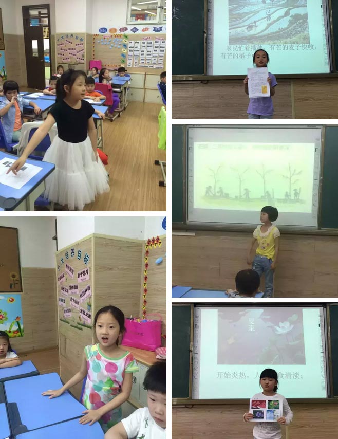 我們用歌聲和動作演繹《二十四節氣歌》,我們陶醉在《春曉》、《夏天到》《秋天到》等音樂中,感受著四季的迷人。