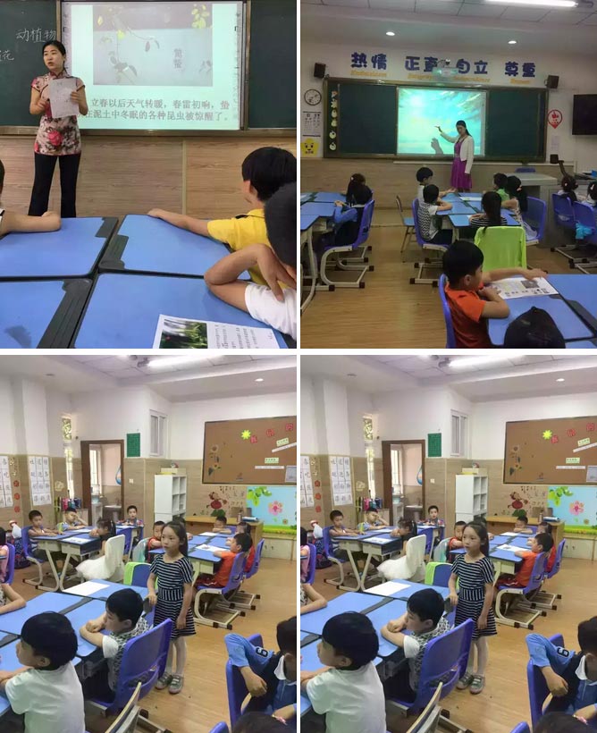 我把我的探究資料跟大家分享,在共同交流中,我們知道了四季循環往復中,動植物的生長變化和人們的相應行動。