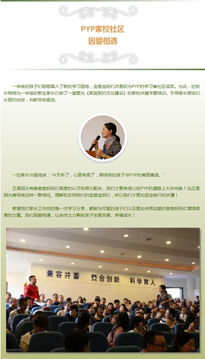 金秋時節有著涼意與溫馨,也有恬靜與激情。當校園櫻花大道上的落葉成為孩子們手中令人驚艷的創意作品時,我們家校學習者社區活動又開始了新的篇章。 9月30日,IB-PYP所有的家長朋友們按照年段分成兩個學習組,繼續以嚴謹認真的態度參與到本次家長工作坊中。