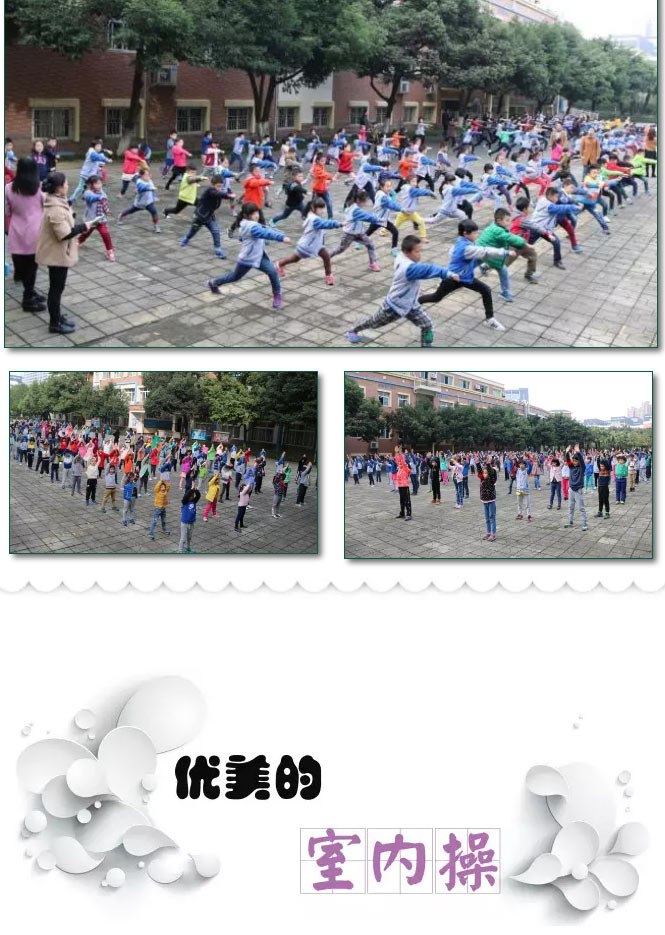 課間操是學校教育的重要組成部分。然而,碰到雨天與霧霾天,學生就無法到室外做課間操,不利于學生的健康發展,于是,就有了我們的室內操。