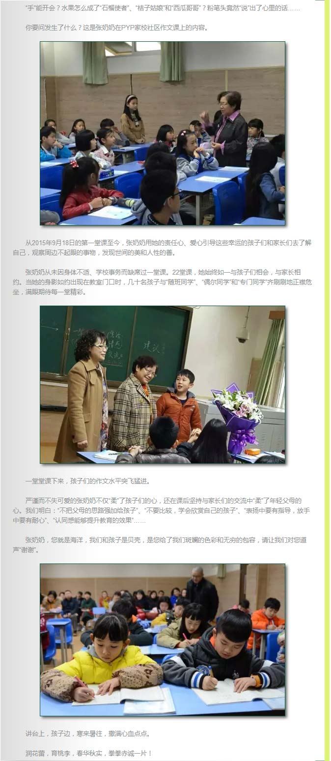 從四年級開始,PYP的孩子與家長在張奶奶作文課堂上共同成長,共享美好。