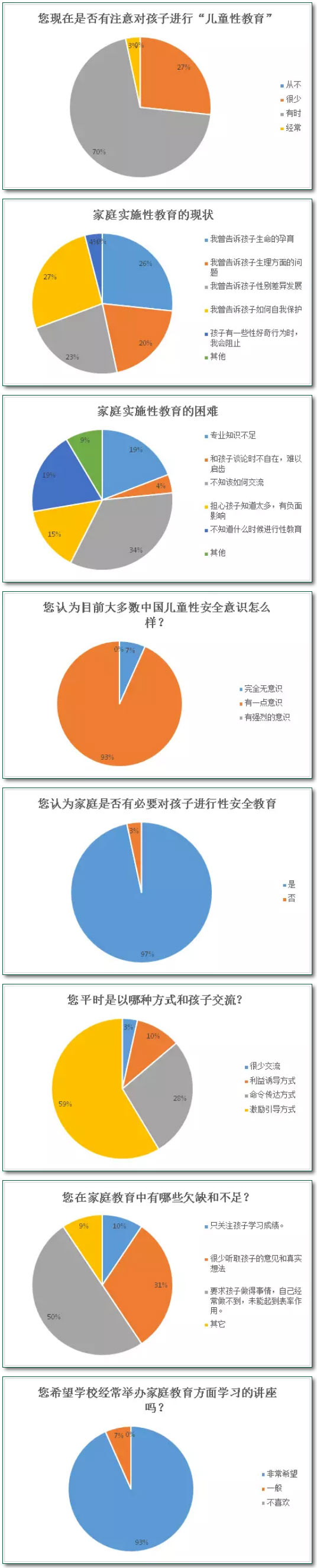 此次問卷調查從家長對孩子的性教育程度、性安全意識和家庭溝通的問題等幾個方面展開而來,主要針對美視IB-PYP三四年級和部分其他年級代表。
