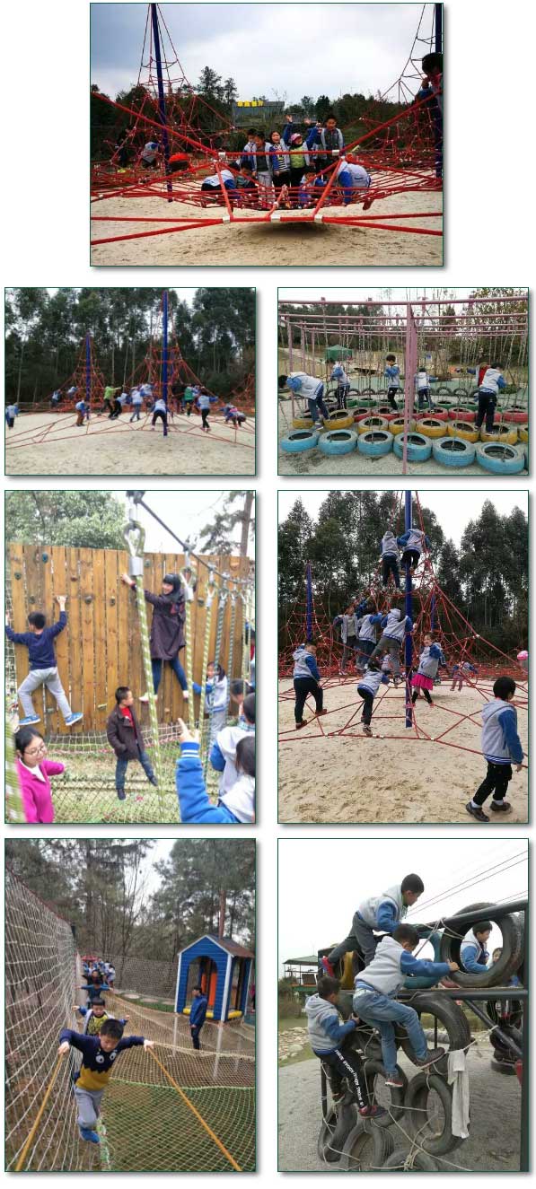 用比賽、合作等方式參與“高空攀爬”和“叢林穿越”等游戲,孩子們在放松的同時,鍛煉膽量,培養團隊合作的意識。