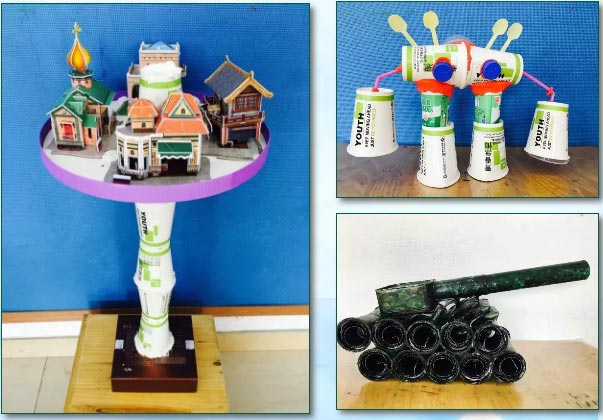 IB-PYP 家校 社區(qū) 嘉年華 綻放自我,分享快樂 作 品 秀 當(dāng)蒲公英潔白的降落傘, 取代了金黃的花朵, 自由飄飛在美視的校園, 伴著家校嘉年華的腳步, 我們的作品, 秀出來了: • • 保護(hù)環(huán)境,變廢為寶,是我們永恒的主題。謝謝爸爸媽媽手下留情,幫助我們收集廢舊物品???!哥哥姐姐們的作品,設(shè)計感滿滿的:
