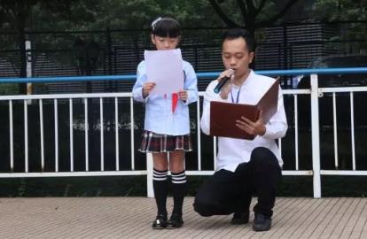 每周一的升旗儀式后,老師用“朗讀者”的方式,向經典致敬。
