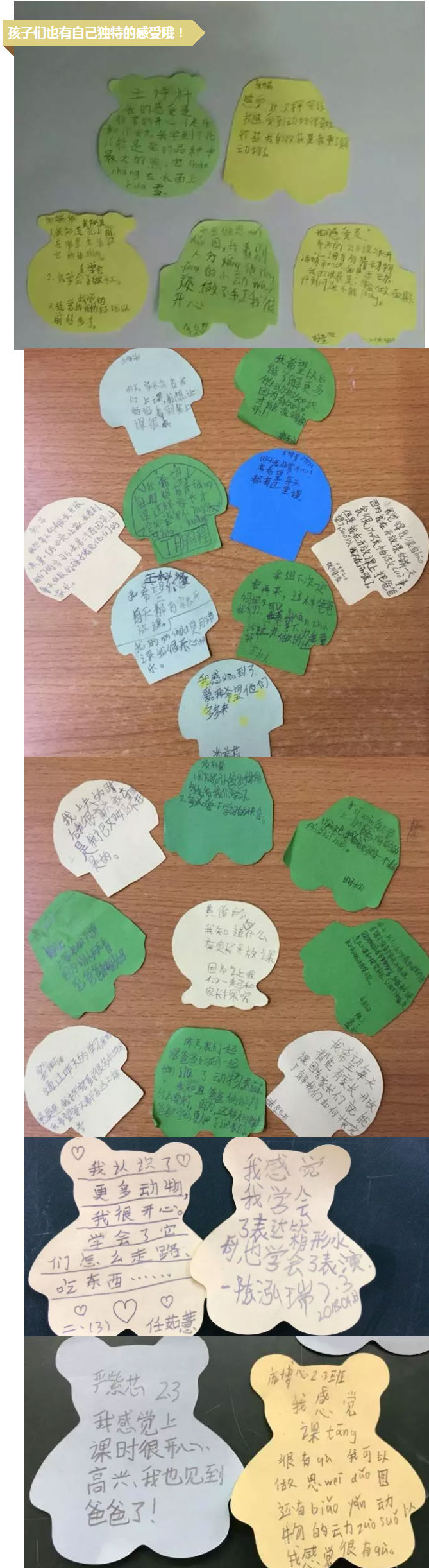 探究課很有意思,有很多有趣的知識點。很幸運的看到了老師們在課堂上對孩子們行為細節的要求和約束,我認為這一點也是很重要的。藝術課并不是很單一傳統的美術或其它,而是有更多讓孩子們去主動發掘知識點,動靜結合,非常有意思,給我的感觸很深!