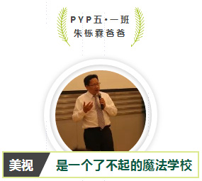 在五·一班朱櫟霖爸爸眼中,美視是一個了不起的魔法學校,老師們各具魔法,孩子們都被點化成精靈。他在演講中這樣說道: