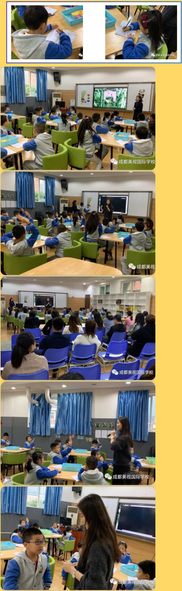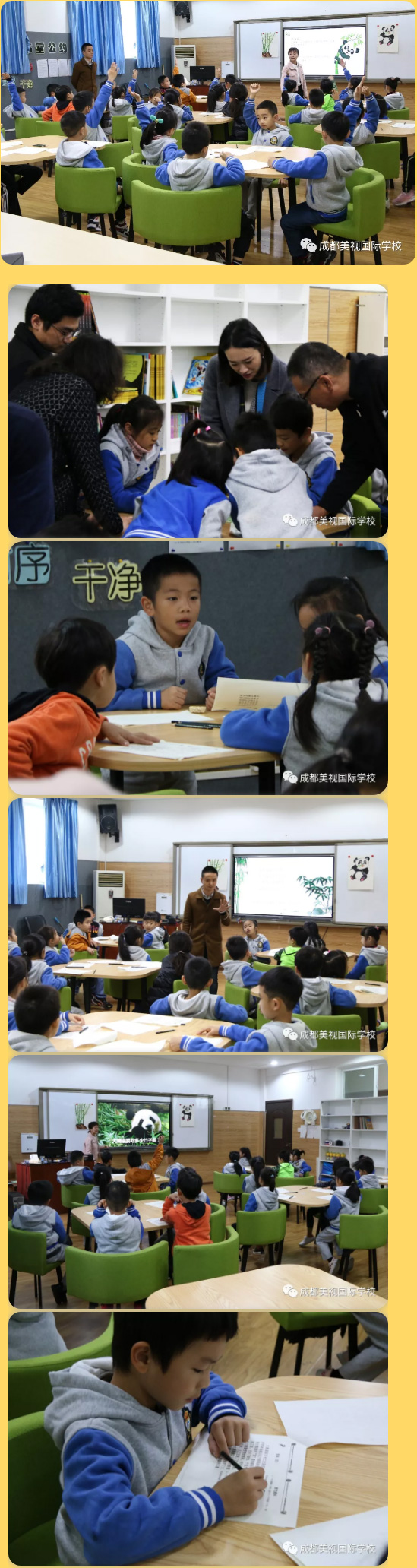 語文、數學、社會和科學四大學科有機融合,兩位班級老師密切協作,循序漸進地帶領孩子們探索竹子的生長環境、竹子的用途,再借由竹子和大熊貓的特殊關系,自然引出大熊貓,進而走向探索人與動物共享自然資源的主要論題。孩子們認真無比,緊跟老師步伐,無論是個人思索還是合作分享,都展示出了自己作為一名IB學習者的學習熱情和學習態度。