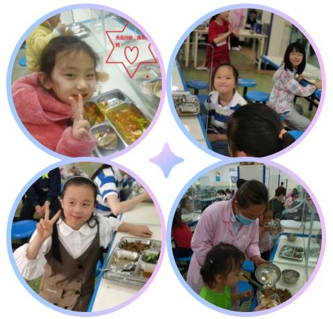 午餐時間到了,同學們在老師的帶領下排著隊來到餐廳。餐廳里有色香味美的美食等著我們???,我們以光盤的行動來證明我們喜歡這里的美食,并且從小養成了愛糧食,節約糧食的好習慣!