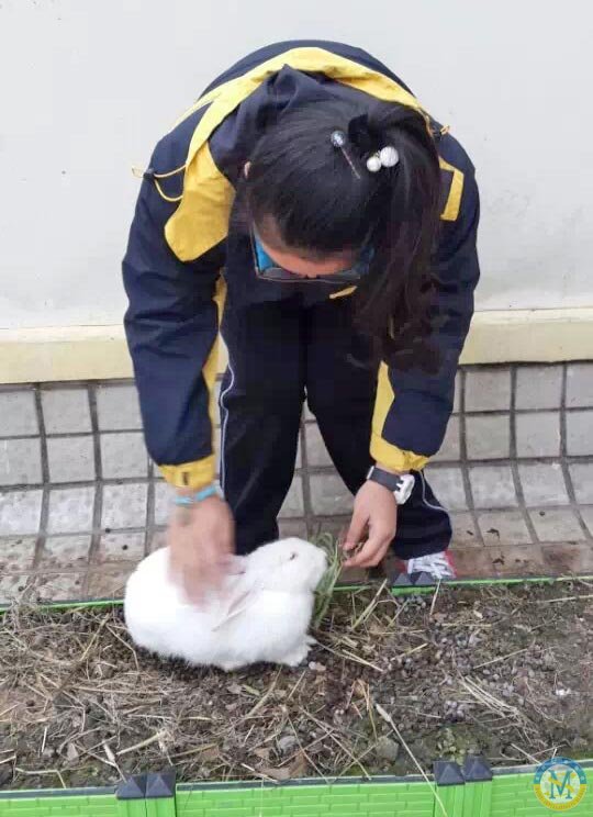 每周一下午俱樂部活動時間,一定看得到孩子們給兔子拔草,平日里毛毛躁躁的男生也認真地為兔窩當起清潔工來。周日返校時,兔子窩旁邊一定是會出現一些驚喜。悄悄多出一根胡蘿卜、一包干燥的飼料,甚至一個兔子飲水杯等等。