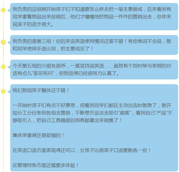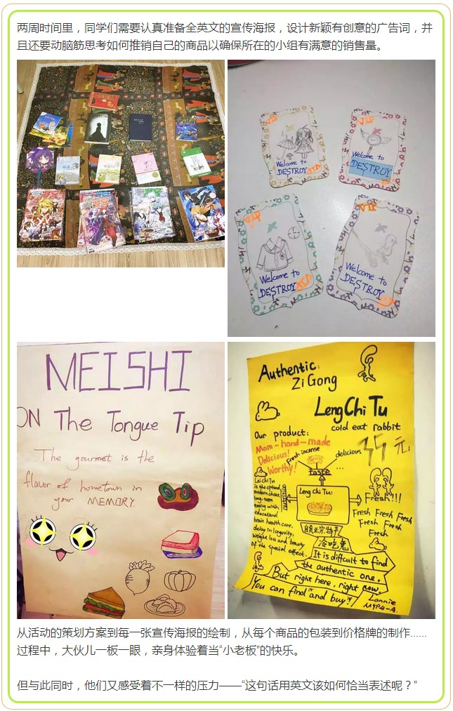 當然,加上特別的銷售手段(比如制作漂亮的 VIP卡),那就一定能夠成為贏家了。有同學開心地說:“真是有趣極了!我們組賣了600多呢!”