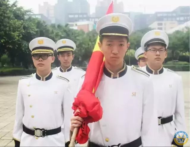 如果你在入學前嚴酷的新生軍訓中顯示出過硬的軍事素養,正步、齊步、立定、軍姿……各項動作要領都堪為表率和模范,個中佼佼者便極有可能被閱生無數的教官和德育處老師選中,從此肩挑“國旗隊員”之責。