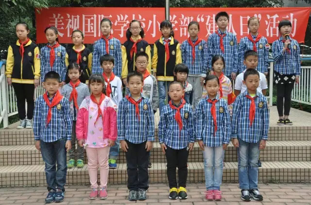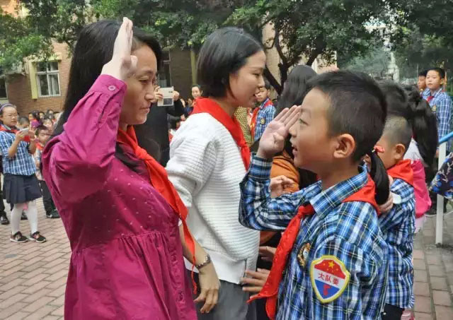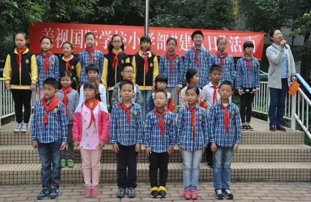 緊接著,四年級(jí)的哥哥姐姐們,莊嚴(yán)地為我們的新隊(duì)員系上了紅領(lǐng)巾,并且在郭老師的示范下宣誓、呼號(hào)。這一神圣而莊嚴(yán)的時(shí)刻相信已牢牢地記在了每一個(gè)少先隊(duì)員的心中。“我是中國少年先鋒隊(duì)隊(duì)員……準(zhǔn)備著,為共產(chǎn)主義事業(yè)而奮斗!時(shí)刻準(zhǔn)備著……”這誓言不僅僅是語言,更是行動(dòng)。所有的少先隊(duì)員們也同在美視“PYP”理念的指引下努力做著團(tuán)結(jié)友愛、互幫互助,舉止文明、行為規(guī)范,有責(zé)任人、有原則、有愛心,積極探究、勇于嘗試,知識(shí)淵博、全面發(fā)展的美視學(xué)子!