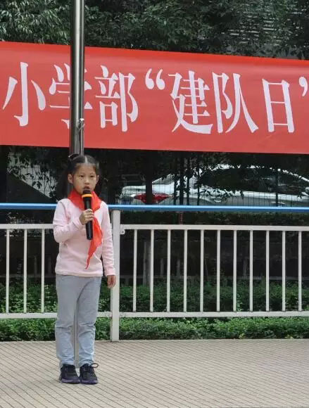 新隊(duì)員代表鄧璐函小朋友,更是發(fā)出了代表所有新隊(duì)員的心聲。“感謝每一個(gè)關(guān)愛我們的老師、同學(xué)和爸爸媽媽,我們?cè)诮?duì)日這天戴上紅領(lǐng)巾,是我們最大的榮耀,我們一定會(huì)好好學(xué)習(xí),努力向上,不辜負(fù)所有人對(duì)我們的期望。”聽聽那稚氣的語言,看看那天真的笑容,一聲聲雷鳴的掌聲,讓我們對(duì)她豎起了大拇指。