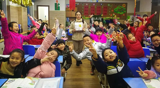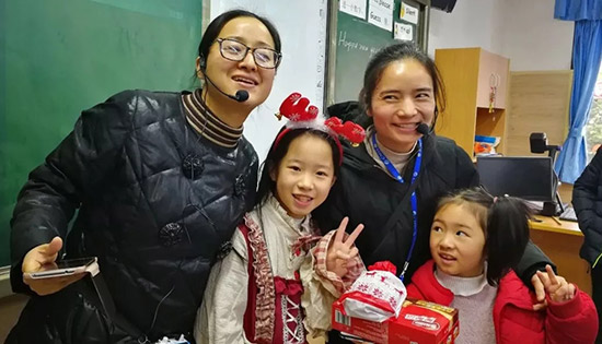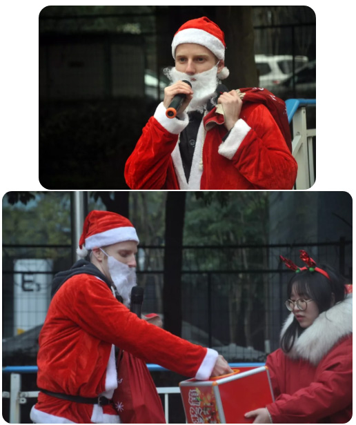 在全校合唱“Santa Claus is coming to town”的時候,“圣誕老人”帶著禮物出場了,全場沸騰了!他告訴孩子們,他帶著禮物從遙遠的北極趕來,給今年最努力的孩子分發禮物。隨后他從“抽獎箱”里抽取了2個幸運班級,把禮物送給了他們。獲得禮物的孩子們太開心了!
