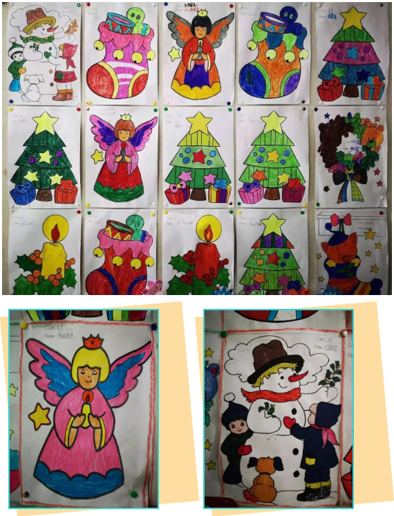 走進二樓過道,這里有一年級寶貝們的圣誕元素英文寫繪展示。作為學校里最小的乖乖們也能用英文寫出好多單詞,是不是很棒???從小在國際文化的熏陶下成長,孩子們都是具有國際視野的小小中國人。