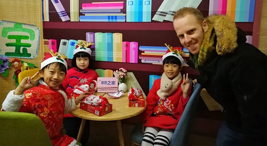 最后的環節更是令人激動不已:由外教Mr. Spencer裝扮的Santa Claus會從全校19個班里,每次抽取出2--3個幸運班級,并派出“圣誕小精靈們”為這些幸運班級的孩子們送去甜蜜的糖果。小小的糖果,吃在嘴里,一直甜到了心坎兒里。