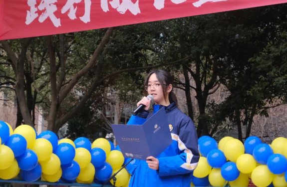 ▲ 校團委學生會主席黃瀚儀同學帶領同學們宣誓
