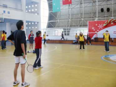 馬來西亞華裔青少年冬令營團到我校交流訪問——與我校學(xué)生進行羽毛球友誼賽。