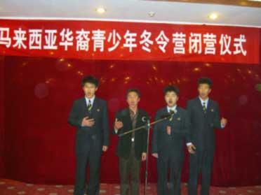我校師生在馬來西亞華裔青少年冬令營團閉營儀式上表演。