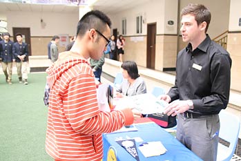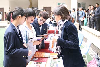 2013年3月12日上午,22所美國大學(xué)的招生官員應(yīng)邀到我校國際項目部開展大學(xué)咨詢會。我校國際項目部高中學(xué)生以及來自美視中美英才班、成都國際學(xué)校、樂盟國際學(xué)校的同學(xué)參加了本次大學(xué)咨詢會。同學(xué)們與招生官員面對面交談并問了許多他們感興趣的問題。我們相信,通過與美國大學(xué)代表的交談,同學(xué)們對這些大學(xué)有了進一步的了解。