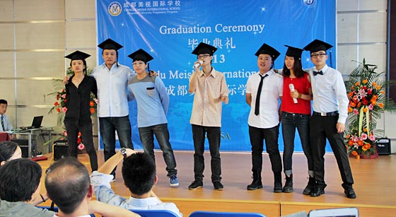 成都4001百老匯學校國際項目部于2013年5月31日舉辦國際項目部2013屆畢業生畢業典禮。畢業生家長以及學校教職員工、初高中同學們出席了本次畢業典禮。國際項目部校長劉建華先生致開幕辭,祝賀畢業生們圓滿完成學業。在本次畢業典禮上,大家欣賞了由同學們帶來的舞蹈、歌曲以及樂器演奏。同時,觀看了由畢業生自制的電影短片。我們祝愿畢業生們前程似錦。
