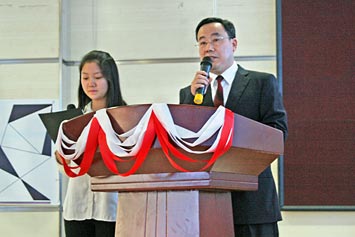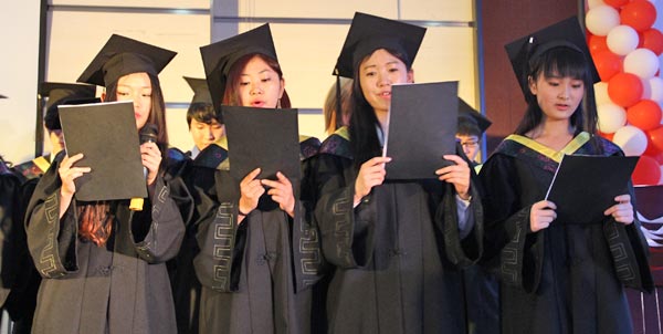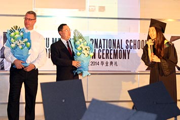 畢業典禮開始時,學術校長Mr. Thompson帶著12年級畢業生們入場,畢業生表達了他們對老師以及同學們的感激之情,特別是那些一直給予他們幫助的人,比如,劉校長、Thompson校長、刁老師、楊老師以及為本次畢業典禮忙碌的11年級的志愿者們。