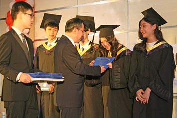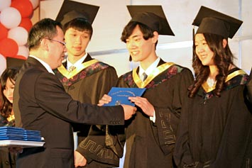 接著,劉校長在畢業典禮上講話,劉校長給予了畢業生三條寶貴的人生忠告,希望他們乘著IB的翅膀,引吭高歌、展翅飛翔。之后,大家欣賞了畢業生們成長歷程的照片集錦,時而引起讓大家大笑,時而可以聽到禮堂里的陣陣掌聲。隨后,畢業生代表羅豐年與劉奕伶同學的發言感動了大家,他們講述了學習IB這一路的酸甜苦辣。劉校長和Thompson校長為畢業生頒發畢業文憑后,大家觀看了由12年級拍攝的視頻以及由他們帶來的歌曲。最后,Thompson校長總結發言,給予畢業生們寶貴的建議,希望他們在今后的人生中取得更大的成功。