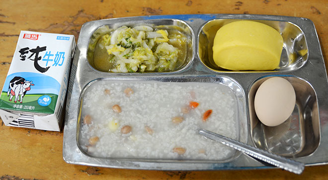 外搭南瓜饅頭和新鮮雞蛋和純牛奶,提供身體里所必須的各類脂肪和蛋白質。