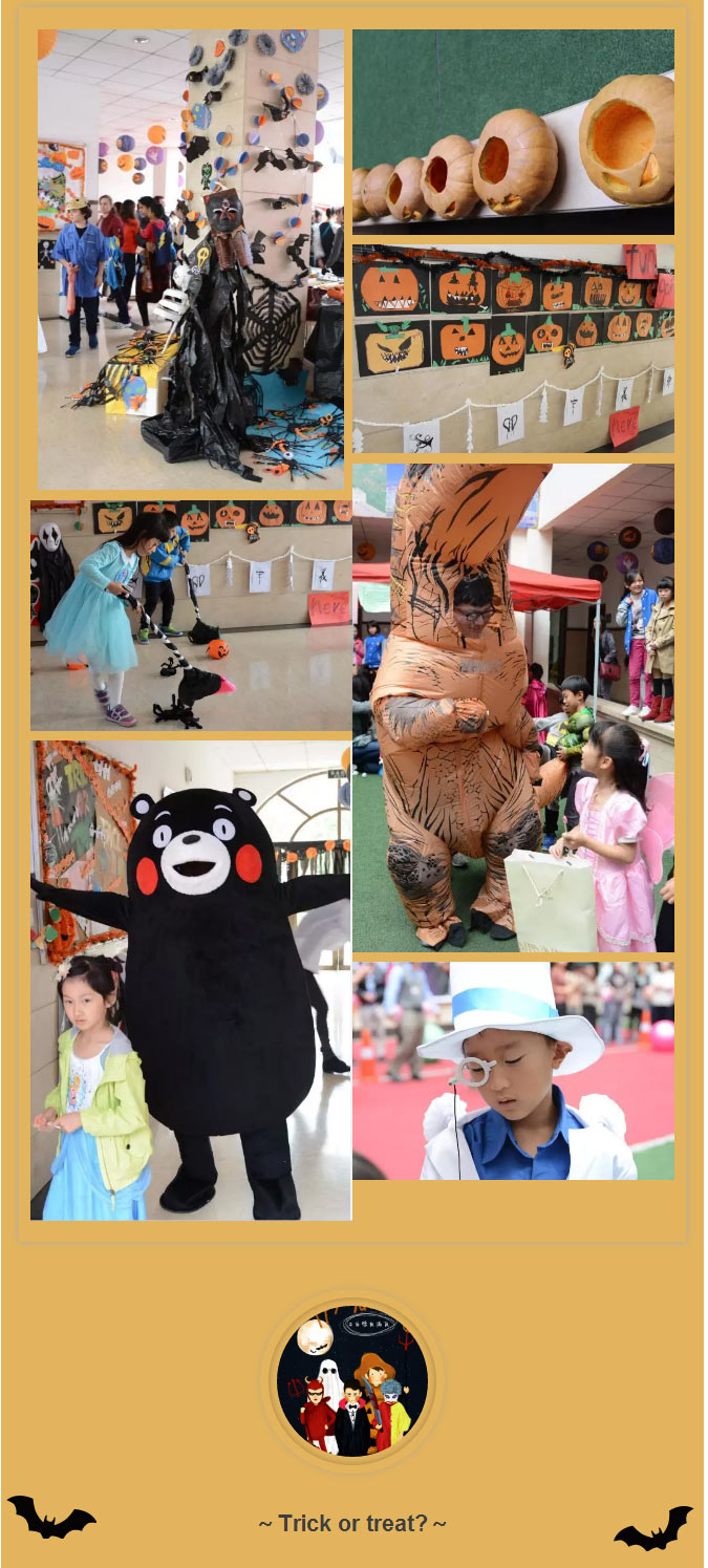 吐露血紅長舌的中國鬼、身穿清代服飾的“僵尸”、張著血盆大口的黑心女巫、一頭銀白的日本動漫人物,兩米高的恐龍......這畫面......幸好在白天!看著融合部Greenyard臺階上排排“坐著”一群咧嘴笑的南瓜,你會不會覺得這是一個喜感十足的節(jié)日?哈哈,這些“南瓜小可愛們”可是融合部·小學的孩子們親手炮制的哦!