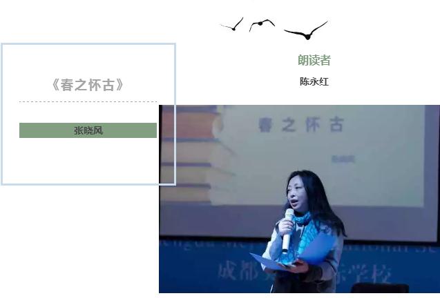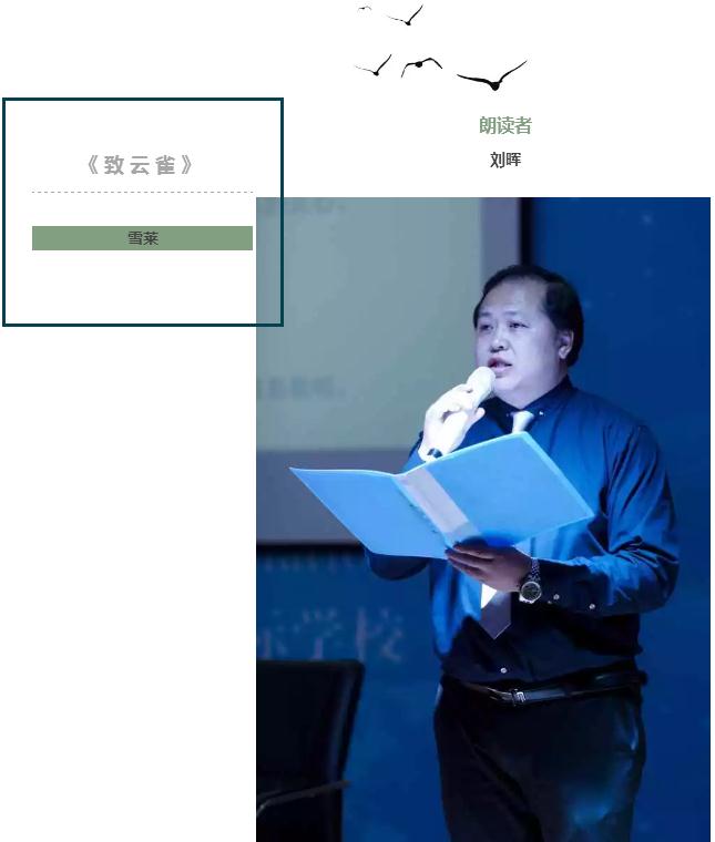詩歌曾經(jīng)為一個少年打開了文學(xué)世界的大門,這當(dāng)初的文學(xué)少年如今已是儒雅的學(xué)者,也是特別會講故事的教育者,無數(shù)的美視學(xué)子癡迷于他那磁性的嗓音,癡迷于他淡定沉穩(wěn)的諄諄教導(dǎo)。 第一位朗讀者中學(xué)部副校長劉暉朗讀了英國詩人雪萊的代表作品《致云雀》,用詩人筆下象征歡樂、光明、美麗的的云雀致敬因詩歌而美好的青春歲月。