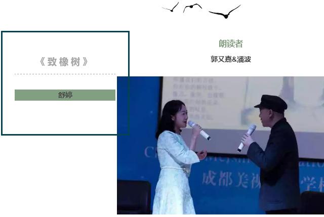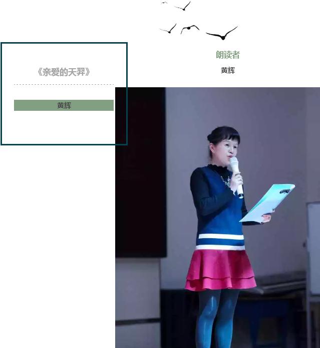 有首歌里唱道:長大后,我就成了你。深愛著這片土地的她從美視的畢業(yè)生變成了美視的教師,把她從老師那里獲得的啟迪又傳揚開去。 孫立雪老師朗讀自己高中時與班主任的交換日記,自己的心路歷程和班主任的悉心教導(dǎo)也許能為青春期迷茫的孩子指明方向。 劉曉梅老師曾在美視的話劇舞臺上塑造了多個成功的角色,《雷雨》中的繁漪,《原野》里的焦母,《暗戀桃花源》中的春花,《抓壯丁》里的李妻,各個角色都生動鮮活。 今天在這舞臺上劉曉梅老師又將龍應(yīng)臺的《父母》中“所謂父母,就是那不斷對著背影既欣喜又悲傷、想追回?fù)肀в植桓衣晱埖娜?rdquo;演繹得感人至深,讓臺下的家長來賓不禁潸然淚下。 對李蓓老師而言,世間凡是美好的事物皆為她所愛。美麗的文字,溫情的圖片,動人的旋律,還有朱自清經(jīng)典美文《匆匆》。 只愿孩子們在逝去如飛的光陰里擁有更多的美好。 郭又嘉老師是一位熱愛詩歌朗誦的才女。在西班牙工作與生活的經(jīng)歷給了她更多的靈感與啟發(fā),作為DP和MYP的中文教師,她帶領(lǐng)著學(xué)生們在文學(xué)殿堂里暢游。 今天她與潘波老師合作朗讀的《致橡樹》讓大家深深體會到愛情的熱烈、誠摯和堅貞。 徐海珍老師是非常用心的教師,也是兩個孩子的母親。繁忙的教學(xué)工作也許會讓她感到疲憊,但教師與母親這兩個角色卻讓她毫無怨言地付出。 龍應(yīng)臺的《目送》寫出了父女母子一場的緣分,也道出了所有人心中最柔軟的“不必追”。 她熱愛文學(xué),一直探索“大語文”教育的方法;她是一位刀子嘴豆腐心的班主任,集嚴(yán)厲與關(guān)愛于一身。 陳永紅老師將語文課本中的《春之懷古》娓娓道來,讓春日的暖意漫入在場每個人心中。
