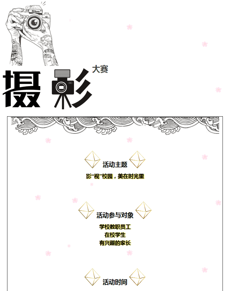 所有參賽作品應結合本次攝影比賽主題,圍繞校園風景、教學、生活場景、學校組織的個人或集體活動。