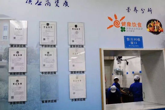 學校供應商從政府“采購平臺”上推薦的供應商中選擇,全部實行公開招標。如肉類供應商是世界500強“麥德龍”供應商。所有供應商的資質,一年一審,公示于生活中心一樓大廳。