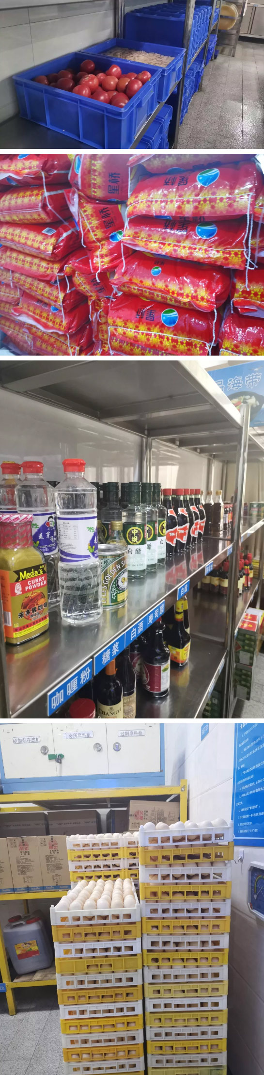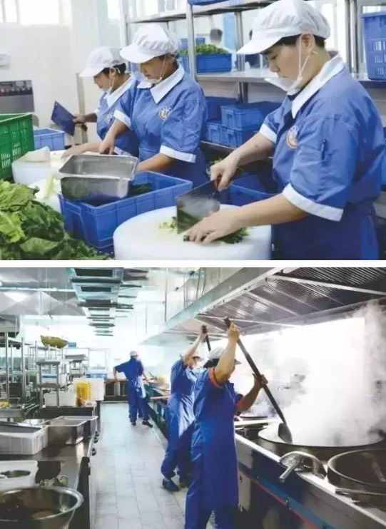 同時,為確保原材料新鮮生活中心實行頭天申購,當天驗收、使用;肉類、蔬菜類使用周期為一天;干雜類、糧油類等使用周期為一周。