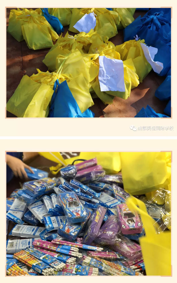 讓美視的孩子告訴您。這些禮物是在2019年6月1日美視中國部·小學(xué)“美視嘉年華”活動中,學(xué)生作品“拍賣”以及家長“美食義賣”善款,所有善款共計12611元。善款由校家委會收取、監(jiān)督和采購此次活動物資。