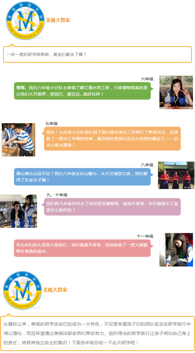 在這里,你能感受到中西教育整合的魅力;你能理解本民族的文化也能提升跨文化理解能力;你能擁有各種機會發展自己的興趣、提升各方面潛能;你能學會如何批判性、創造性地思考;你能掌握相應的技能和態度來開展切實的行動,真正體會“建設更美好的世界”的含義。