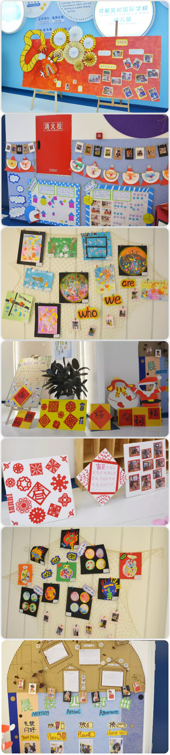 幼兒園的一景一物、每面墻壁、每個(gè)角落都在無聲地說話,告訴孩子們,新年來啦!我們的幼兒部,注重物質(zhì)文化建設(shè),幼兒部的老師們努力讓物質(zhì)文化凸顯個(gè)性美,發(fā)揮其熏陶功能,此次迎新活動(dòng)中,幼兒部以新年&圣誕活動(dòng)季的形式,通過綠化、美化、凈化、園林化、知識(shí)化,讓孩子無論身在何處都能受到新年文化的熏陶,使幼兒園真正成為孩了們溫暖的家園、幸福的樂園。