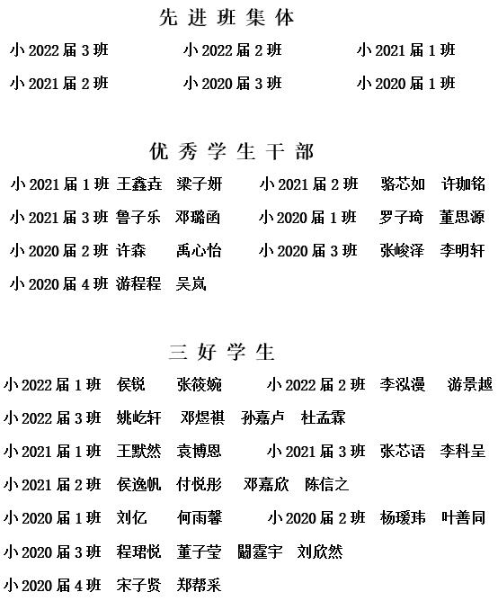 小學部2019—2020學年度高新區先進班集體、三好學生、優秀學生干部公示名單(第一榜)