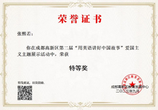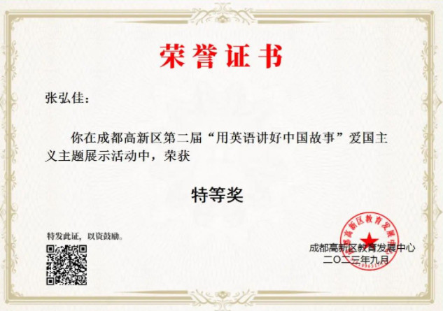 為進一步落實黨中央、國務院發(fā)布的關于《新時代愛國主義教育實施綱要》的文件精神,推動愛國主義教育"進課堂、進教材、進頭腦",用情用力講好中國故事,切實幫助學生涵養(yǎng)家國情懷,樹立國際視野,堅定文化自信,著力培養(yǎng)擔當民族復興大任的時代新人,向世界展現(xiàn)可信、可愛、可敬的中國形象,四川省教育科學研究院開展了四川省中小學師生“用外語講好中國故事”愛國主義主題展示活動。