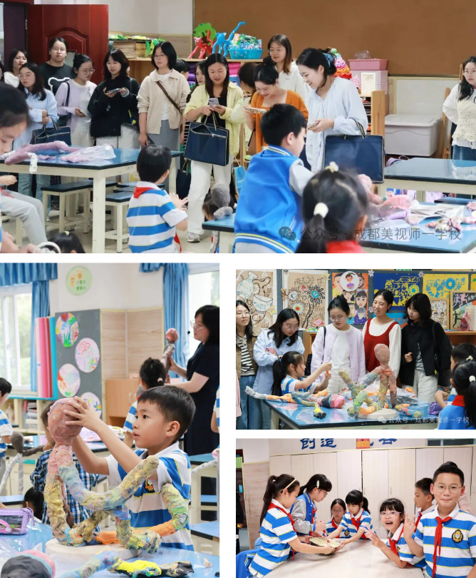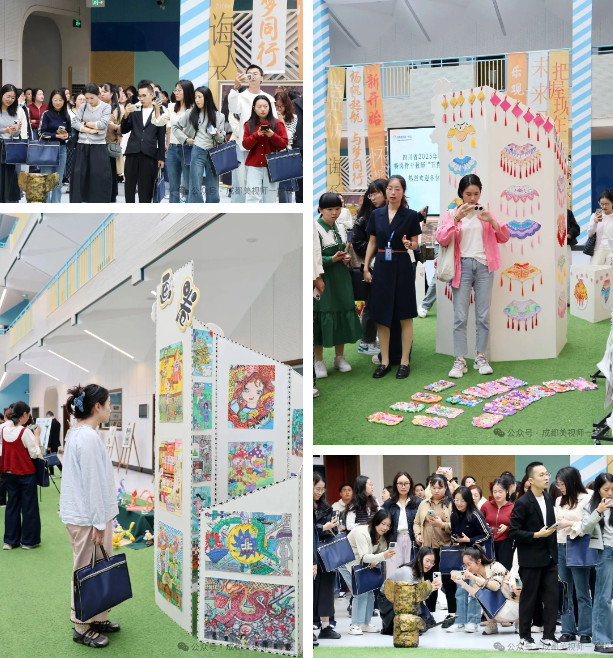 隨后,大家現場觀摩主題為“青銅回響·藝繪新章”學生創意繪畫、手工展,直觀感受我校美育工作的實際開展情況。