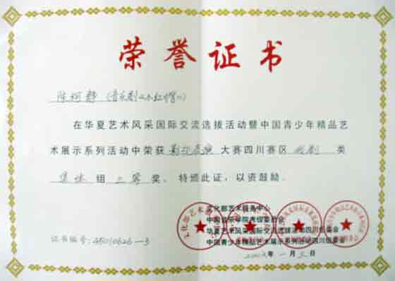 陳柯靜同學參演的兒童話劇《報童》、音樂劇《小紅帽》在華夏藝術風采國際交流選拔活動中分獲一、三等獎;并獲表演專業少年組一等獎