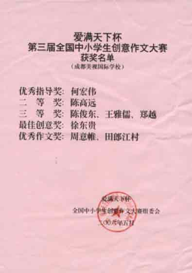 優(yōu)秀作文獎(jiǎng):毛弈竹、陳瑞、劉漠、李佩佩、張蕓晨、龔莉、程懿驊、吳雨曉