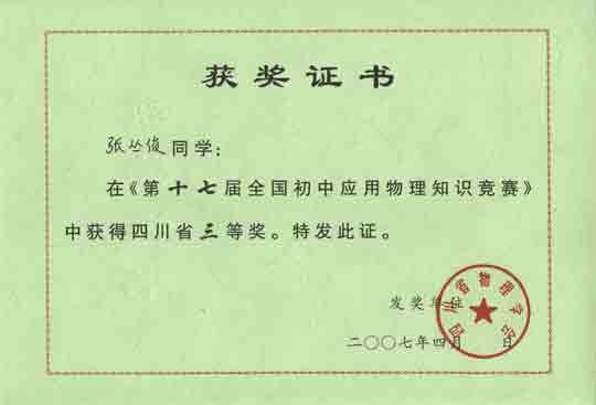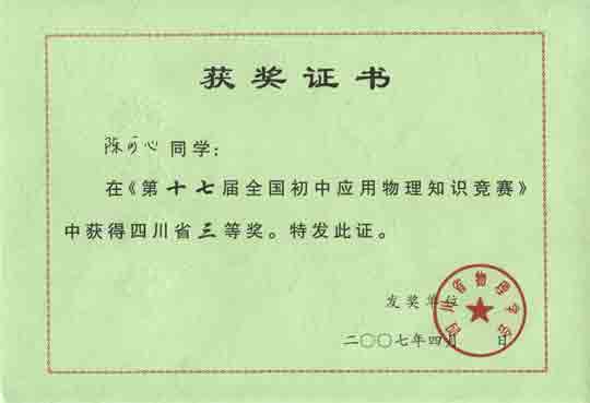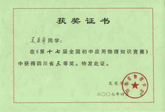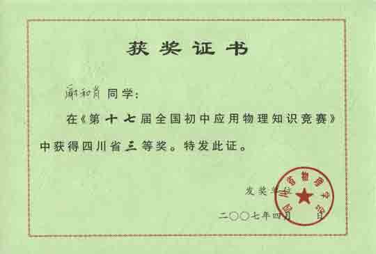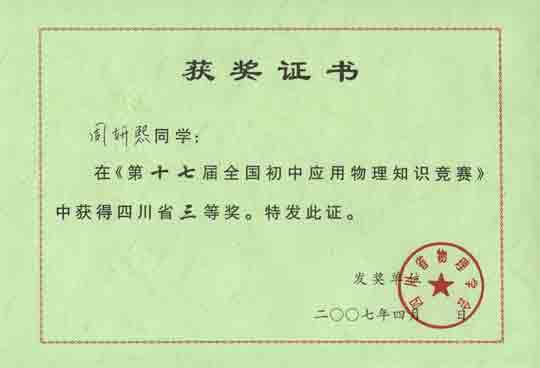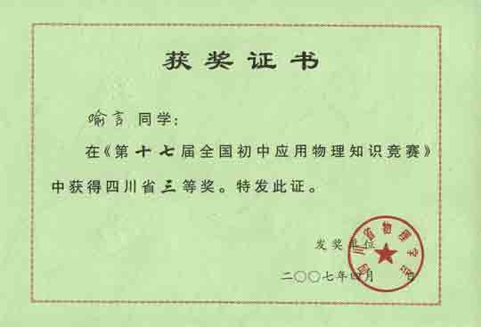 四川省三等獎:陳可心 吳英卓 謝和肖 喻言 張叢俊 周妍熙