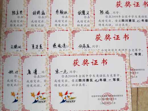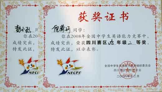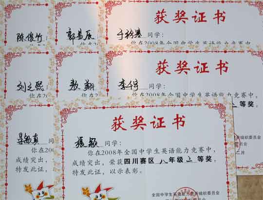 八年級二等獎: 陳俊竹、郭易辰、于矜寒、劉之熙、敖翔、李千宇、晏敏真、張穎