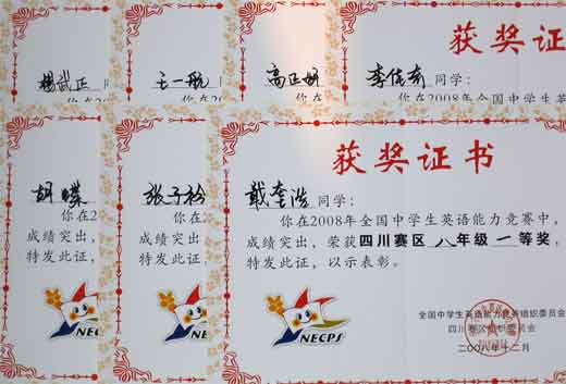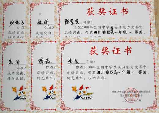 九年級一等獎: 刁泳心、顧子揚、詹思宇、焦子娟、鐘天悅、江丹陽、沈默漪、鄭越
