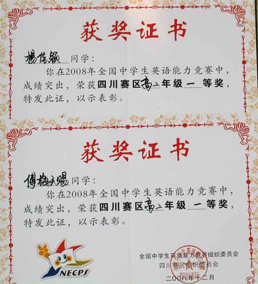 高二年級:陳可心(輔導(dǎo)教師:楊世樂)、鄒成漢(輔導(dǎo)教師:唐淑芳)