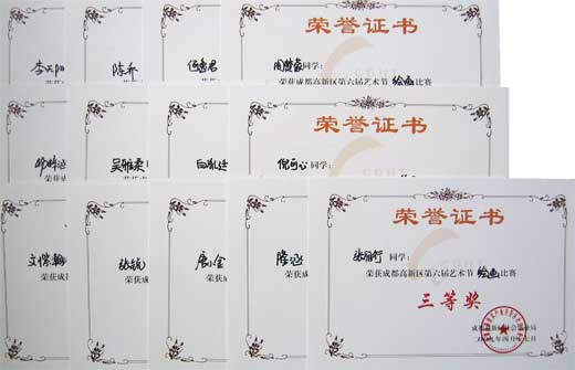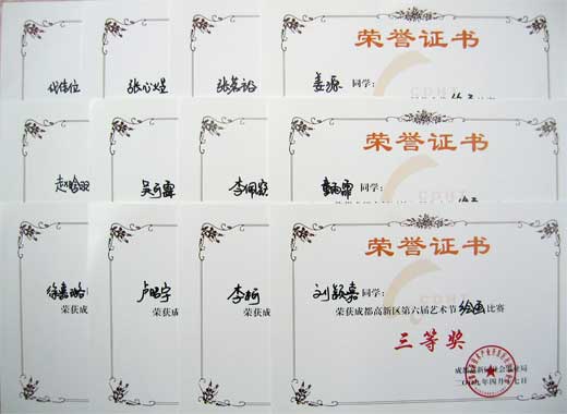 小學部美繪畫三等獎: 劉穎嘉 李柯 盧昭宇 徐嘉璐 童雨霏 李佩窈 趙晗羽 吳可霏 姜源 張茗裕 張心煜 代佳位