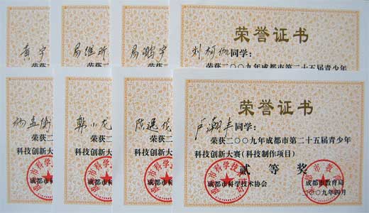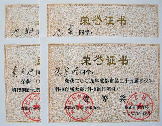 團體一等獎: 成都4001百老匯學(xué)校 一等獎: 池翔 池威 黃思遠(yuǎn) 袁宇浩 二等獎; 易維昕 易鵬宇 劉柯伽 楊夢衡 韓小龍 陳逸倫 盧瀚豐 三等獎: 巢良俊 許德濤 張心雅 丁文杰 張江源 林凱旋 蔣昊陽 鄭茜娜 張翰文 徐維恒 周天樂 邵詩芹 王清揚 趙旃藝